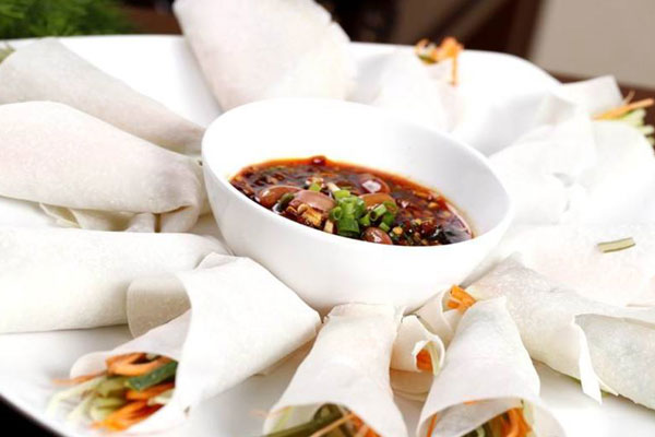 一张薄如蝉翼的面皮里包起,多达几十种的配菜,再淋上酸爽可口的蘸水,一下子放入口中,在细嚼慢咽一番,那种感觉让人回味无穷,这就是贵州特色小吃丝娃娃。丝娃娃就如同裹在襁褓中的婴儿一般,痞子薄饼裹着萝卜丝、折耳根、海带条等配菜,形如婴孩所以称之为丝娃娃。